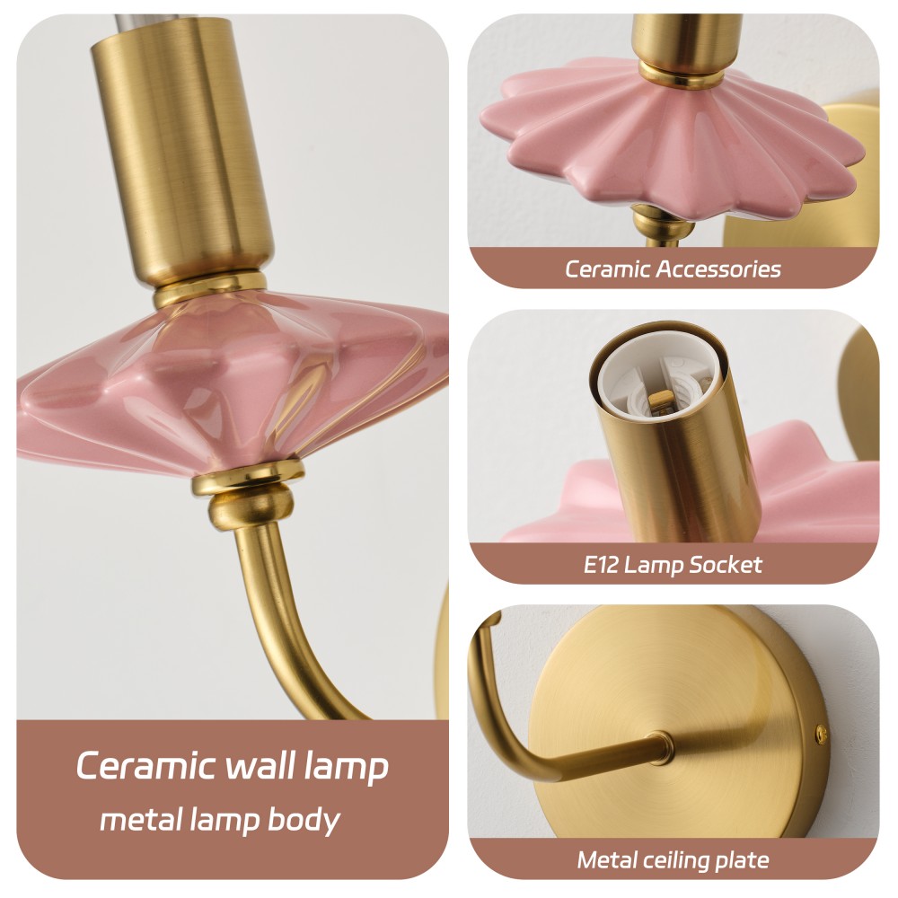 Lavet af blød pink keramik og flerlags forgyldt hardware, denne væglampe til badeværelset kombinerer klassisk stearinlysform med moderne let luksusstil, et mesterværk af Strong Lighting, der integrerer keramiske og metalmaterialer. De keramiske dele er forarbejdet af højtemperaturruder, der har en glat berørings- og falmningsbestandighed, mens det forgyldte hardware har fremragende oxidationsmodstand, velegnet til langvarig brug selv i fugtige badeværelsesmiljøer i kystområder. Udstyret med en E12-fatning, den er kompatibel med traditionelle og LED-pærer, og understøtter en maksimal effekt på 40W pr. lampe. Varmt og køligt hvidt lys kan skiftes frit for at skabe forskellige atmosfærer, med dimensionerne L200xB110xH210 MM, dets kompakte proportion passer til forskellige indendørs vægge.